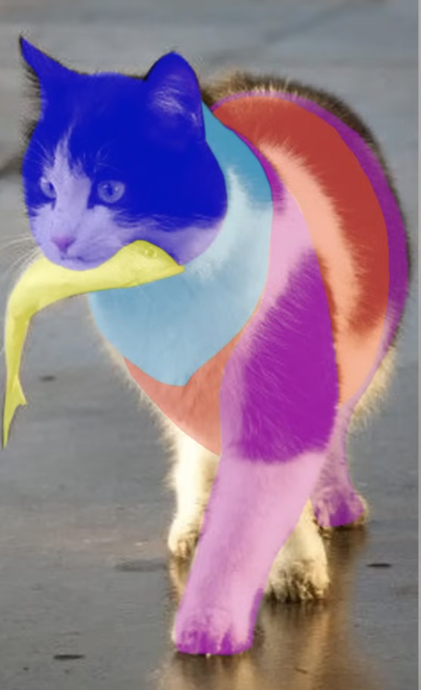 One of the things I really clicked with was viewing the animal as multiple parts of a whole, rather than one part. Which I believe is conveyed well in the highlighted colors and parts of the cat that are highlighted.